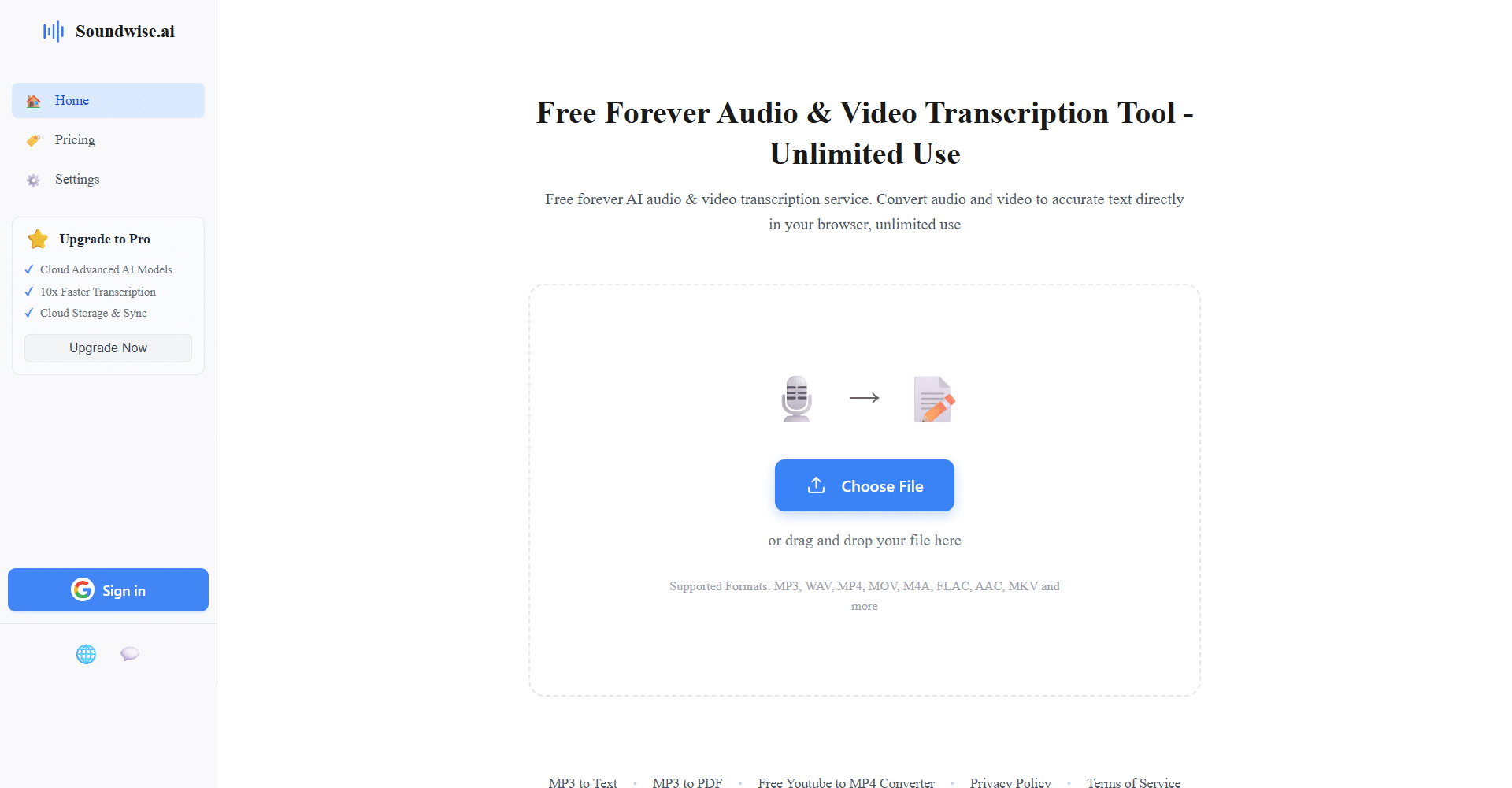 SoundWise AI is a browser-based transcription tool designed to turn audio and video files into accurate, readable text in seconds. Built for speed and simplicity, it allows you to upload or drag and drop files directly into your browser without installing any software. The platform supports a wide range of formats, making it easy to convert lectures, meetings, interviews, and media recordings into text. With instant transcription, browser-based access, and drag-and-drop simplicity, it helps streamline documentation and content workflows for everyday use.