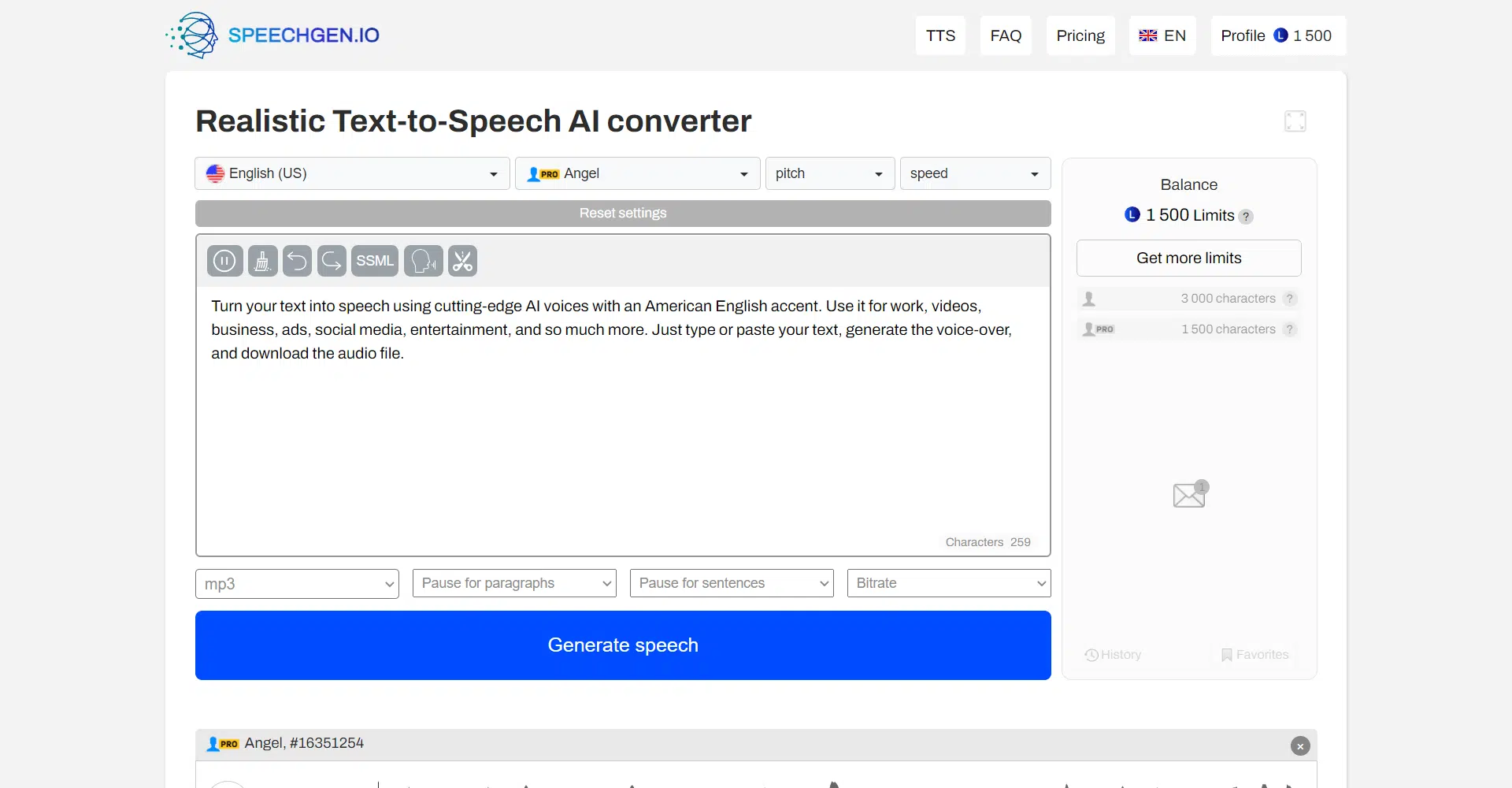 And here’s the best part: you can try our service for free! With a generous free trial allowing you to experience the magic of AI-generated voiceovers, SpeechGen.io invites you to explore the world of natural-sounding speech at no cost. Simply sign up, discover the possibilities, and take the first step towards transforming your written words into captivating audio experiences.