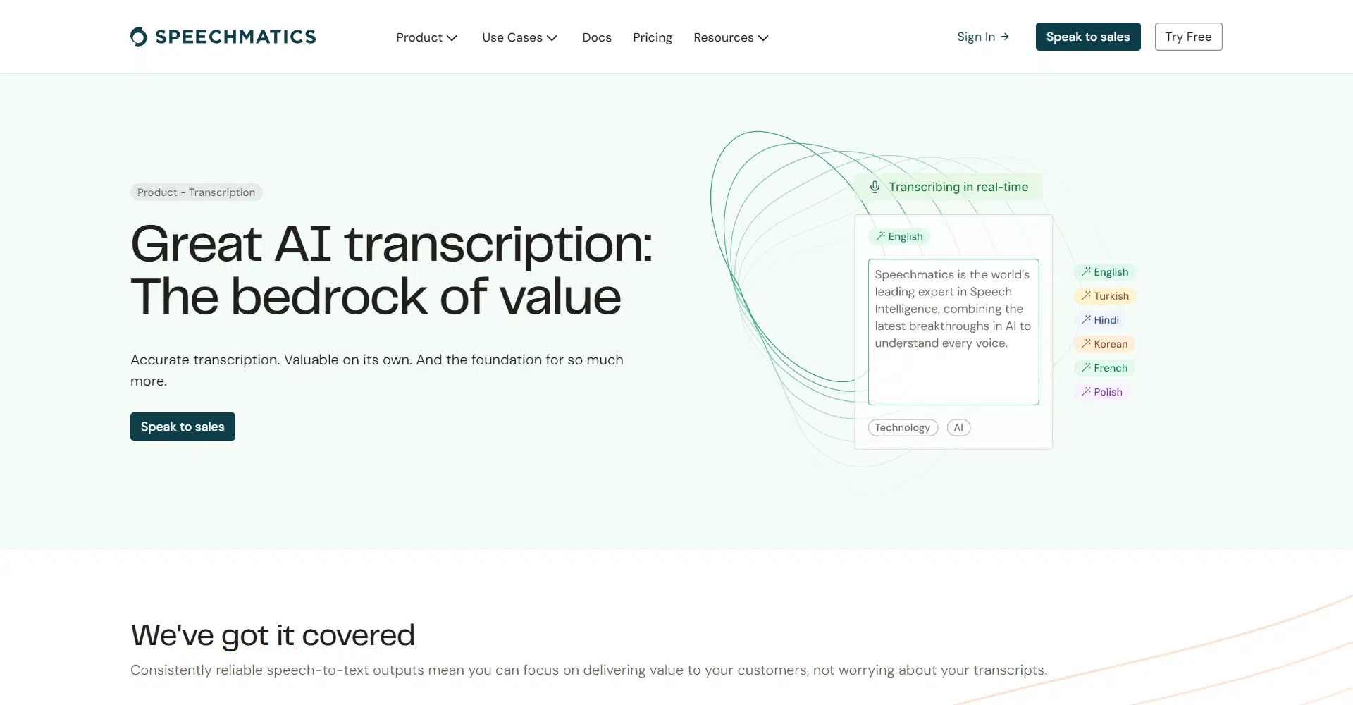 Step into the realm of AI-driven transcription with Speechmatics, where accuracy is not just a goal but the bedrock of value. They offer a platform where businesses can rely on consistently reliable speech-to-text outputs, freeing them to focus on delivering value to their customers without the worry of proofreading.