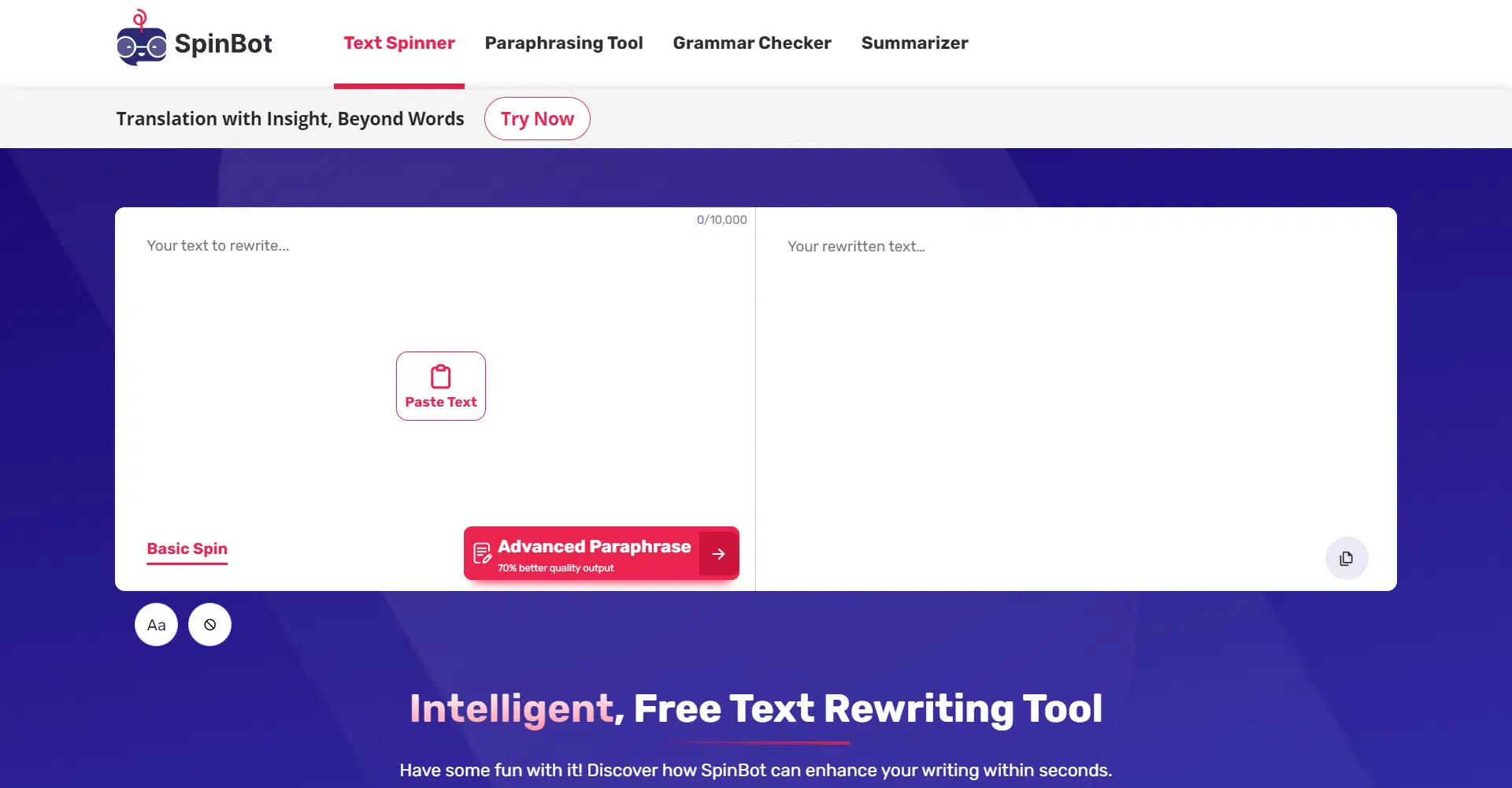One of the best features of SpinBot is its ability to handle large amounts of text. You can rewrite or paraphrase up to 10,000 characters at a time, which is about 1,000 words! This makes it easy to transform old blog posts or website articles into completely new pieces, giving you double the value from your hard work.
