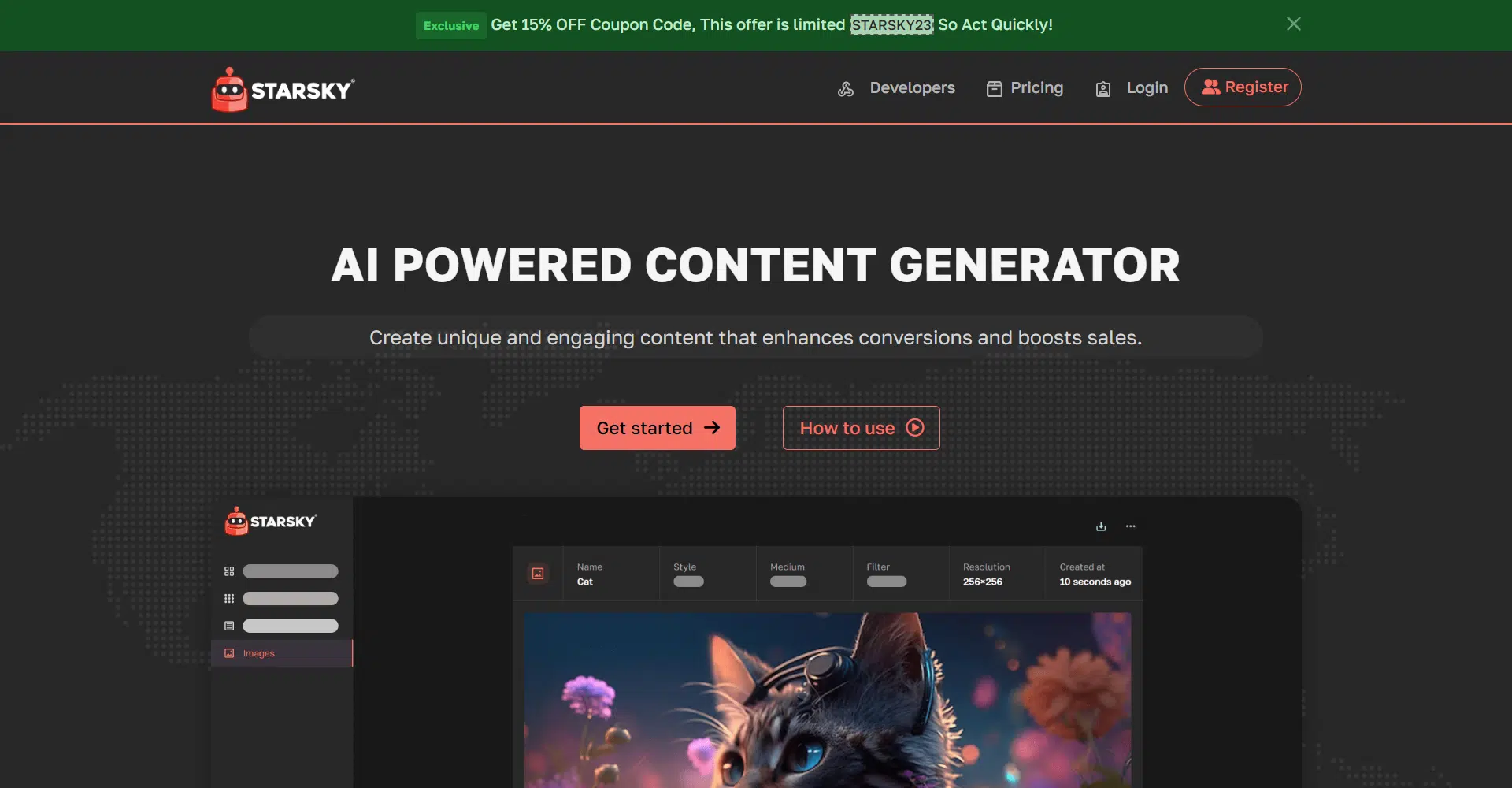 With Starsky, you can generate original content for websites, social media, and marketing campaigns, as well as receive immediate, interactive answers to your questions. It even allows you to extract and transcribe audio files into fully editable documents, making content creation easier than ever. The AI-driven platform offers specialized tools for everything from writing compelling blog posts and creating catchy advertisements to generating hashtags and reviews.