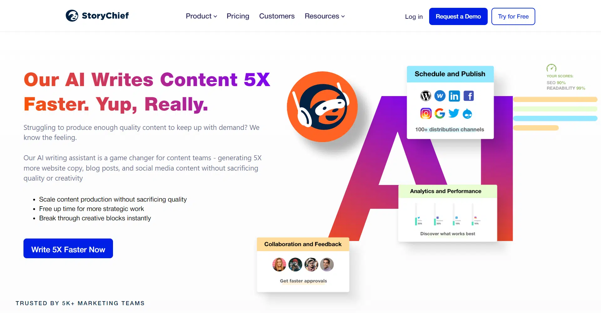 StoryChief is an AI-powered writing assistant designed to help content teams produce high-quality content 5X faster. Whether you’re managing website copy, blog posts, or social media content, StoryChief accelerates content creation without sacrificing quality or creativity. With this tool, you can break through writer’s block, streamline workflows, and free up more time for strategic initiatives.