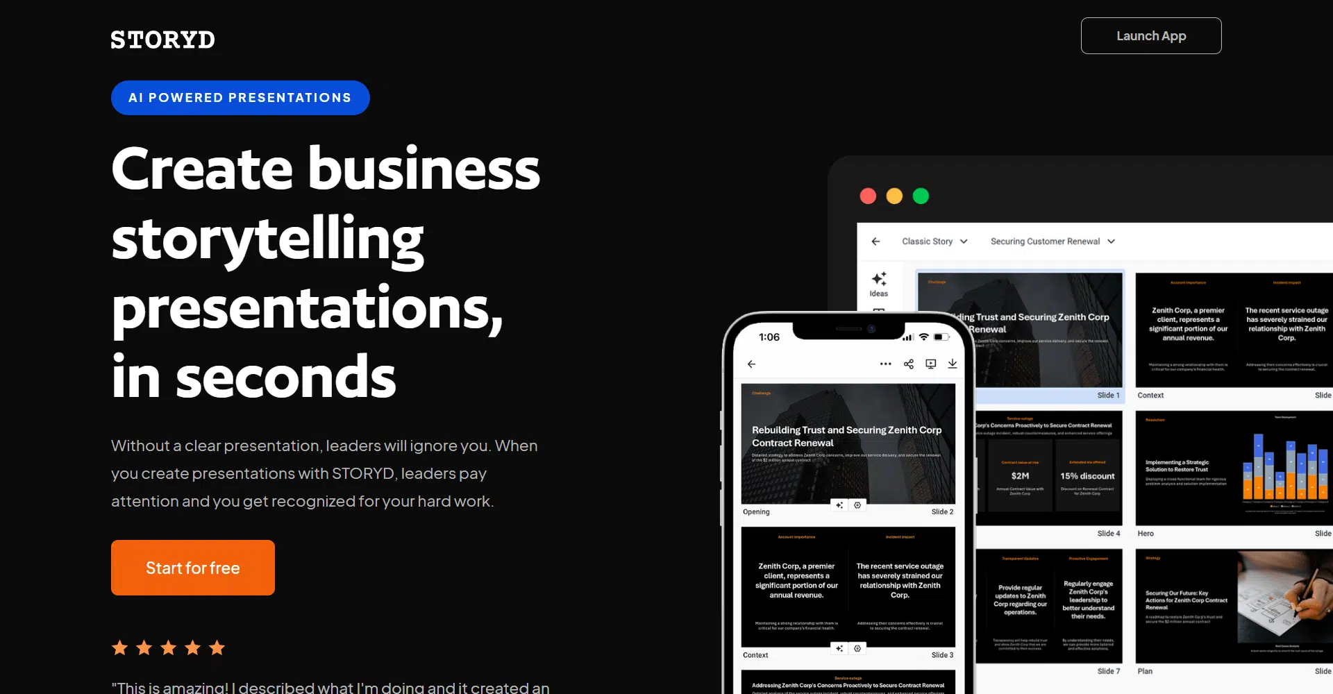 In the dynamic realm of business presentations, STORYD emerges as a game-changer, offering a seamless solution for crafting captivating storytelling presentations in mere seconds. With STORYD, users unlock a world of creative potential, exponentially increasing their productivity and effectiveness.