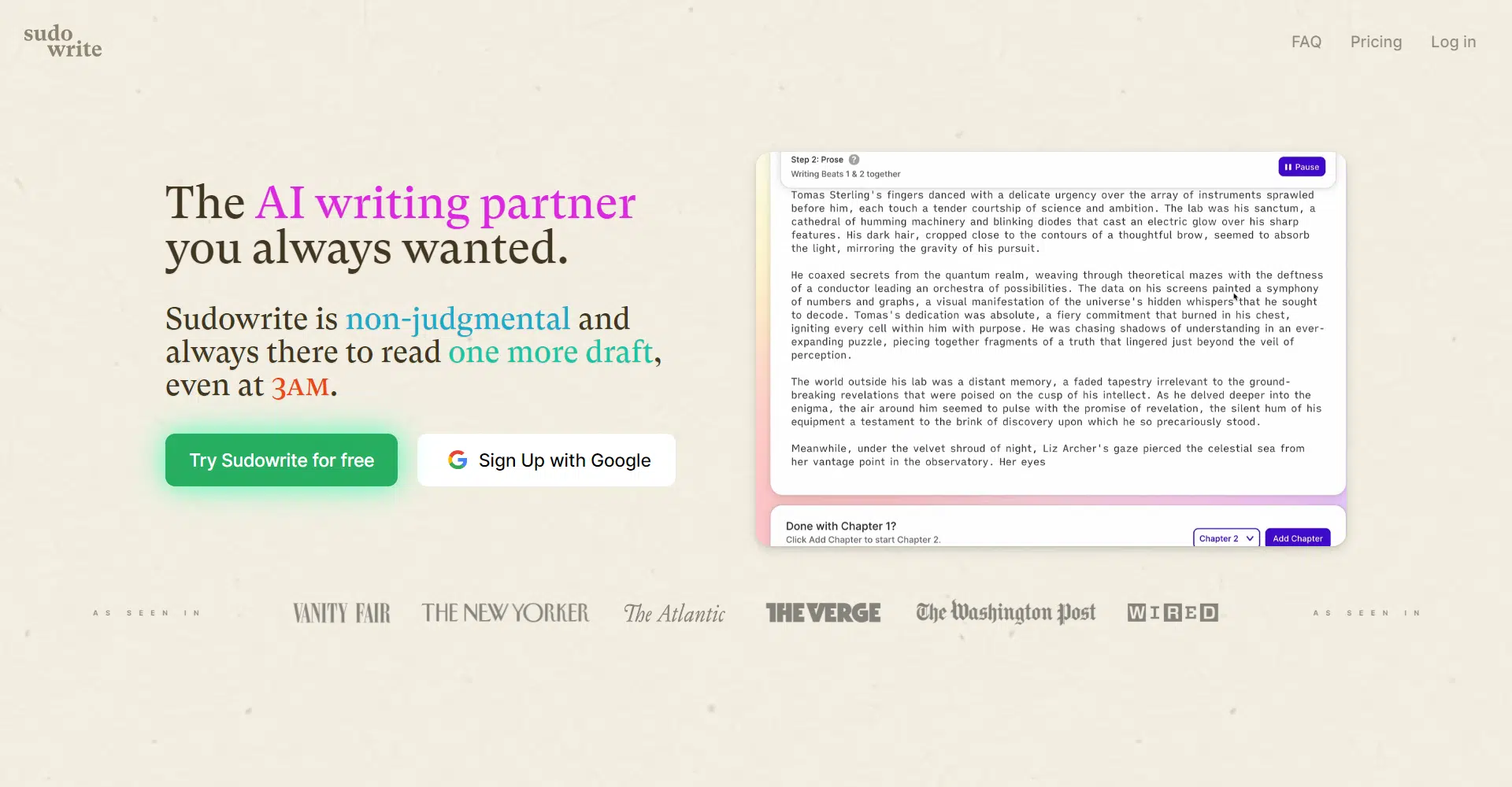 As you immerse yourself in the creative process, Sudowrite stands ready to provide invaluable feedback and insights, guiding you towards mastery with unwavering support and encouragement.