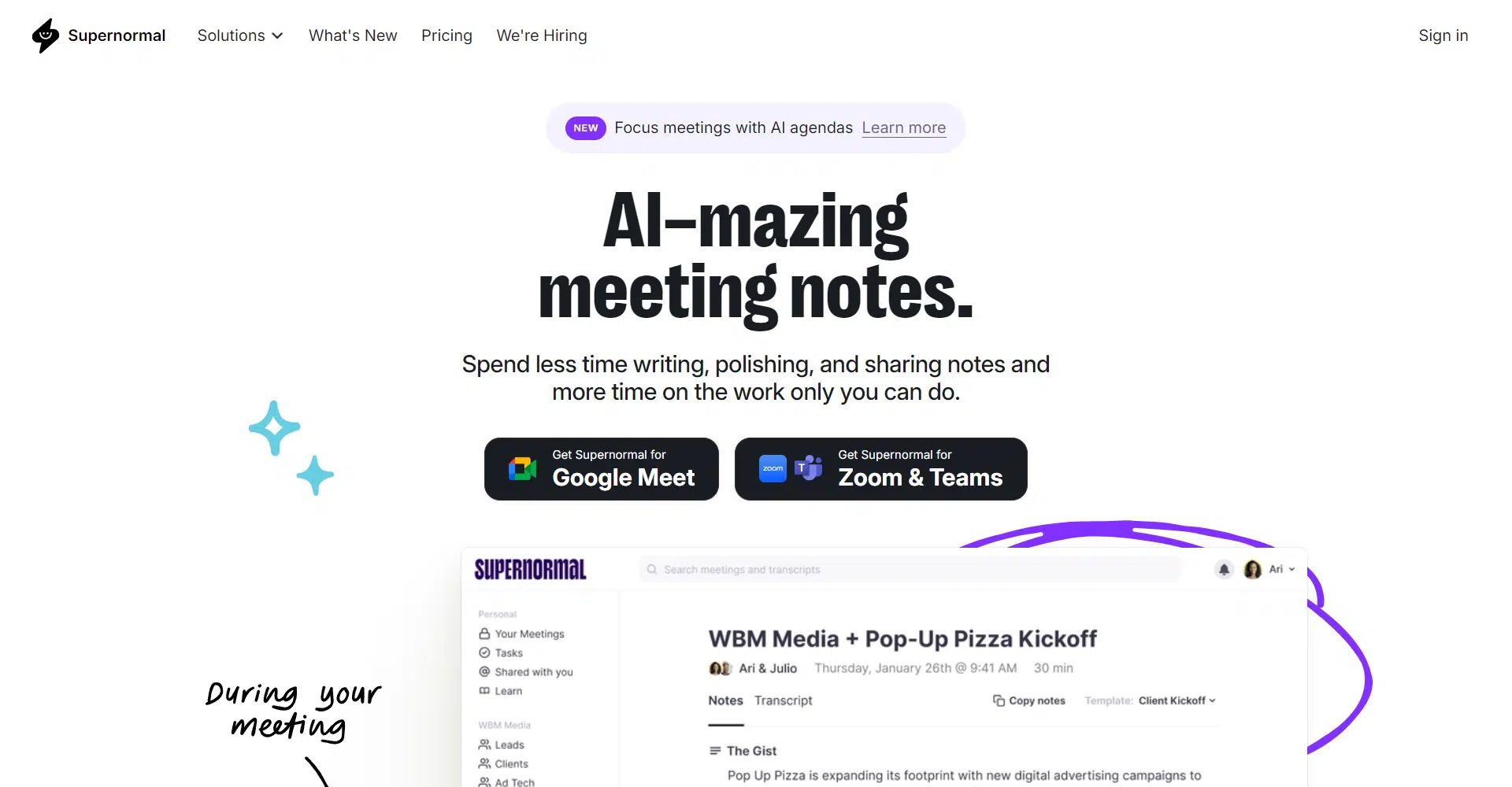 Take the hassle out of meeting notes with SuperNormal. This AI-driven tool captures everything during your meetings, formats the notes automatically, and even tailors them to different use cases. Now, you can spend less time on notes and more time on the work that only you can do.