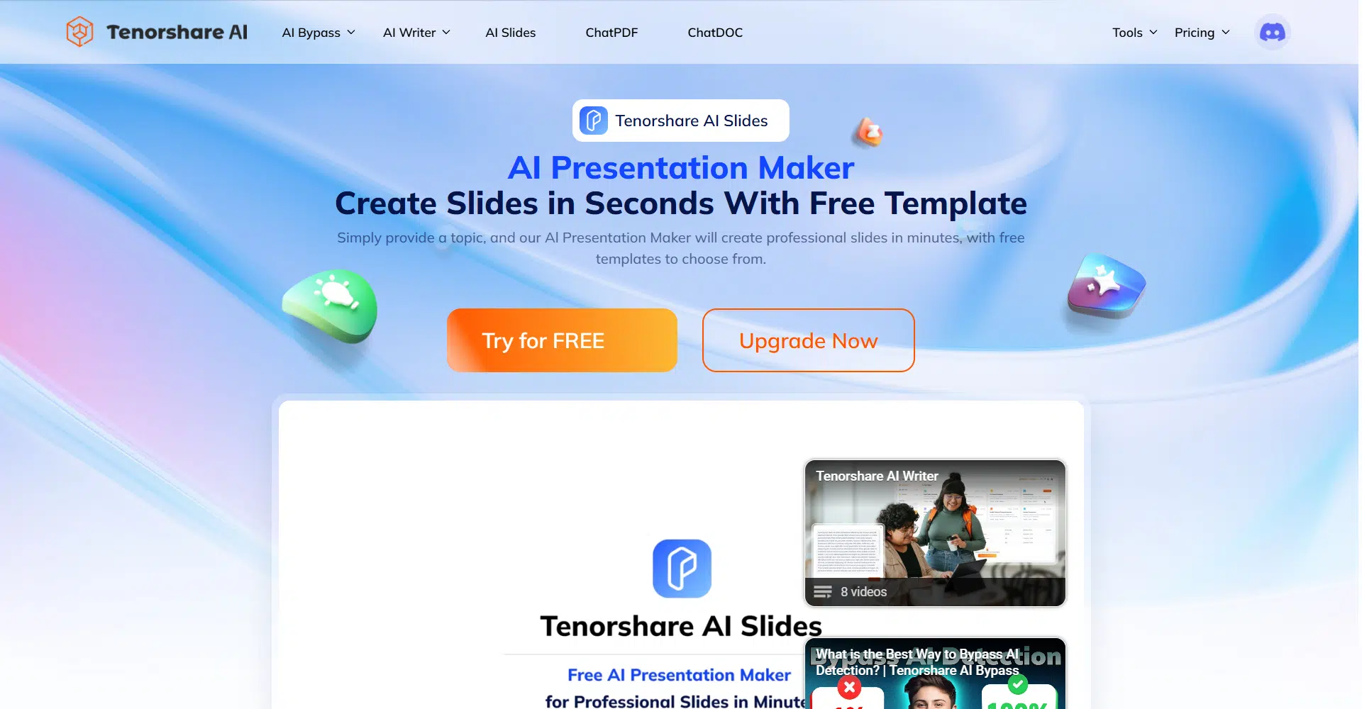 TenorShare AI Presentation Maker is the perfect solution for creating professional presentations quickly and easily. This AI-powered tool allows you to generate a complete slide deck in just seconds by simply providing a topic. The platform offers a wide variety of customizable templates, so whether you need a corporate, technical, or creative presentation, you’ll find the perfect fit for your needs. With advanced text and language options, you can tailor your slides to any audience, ensuring that your presentation is clear, engaging, and professionally crafted.