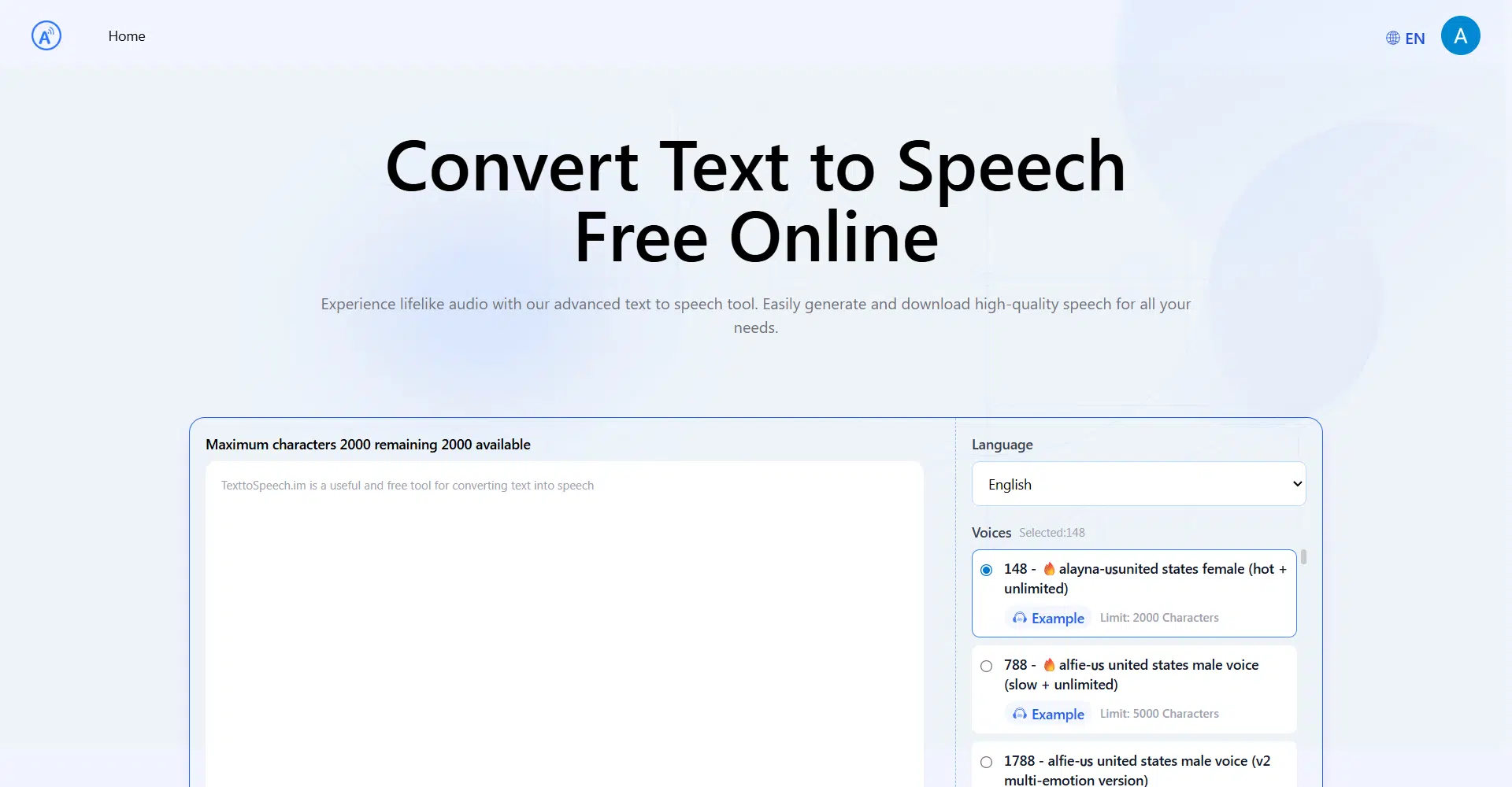 TexttoSpeech.im is a powerful online tool that lets you convert text to speech in just seconds, offering a truly lifelike listening experience. Whether you’re creating audio for videos, presentations, learning materials, or accessibility purposes, this tool delivers high-quality speech synthesis that sounds natural and engaging. You can choose from a wide range of voices across different accents, genders, and emotions—making it easy to find the perfect match for your project.