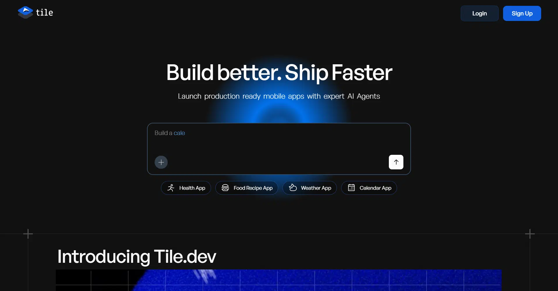 Tile.dev is a modern AI-powered platform that helps you build production-ready mobile apps faster by combining expert AI agents, visual editing, and one-click app store deployment. Instead of struggling with complex development workflows, you can go from idea to App Store or Play Store using simple chat prompts, visual inputs, or direct editing. Tile is designed to support real-world apps, making it suitable for serious products rather than basic prototypes.