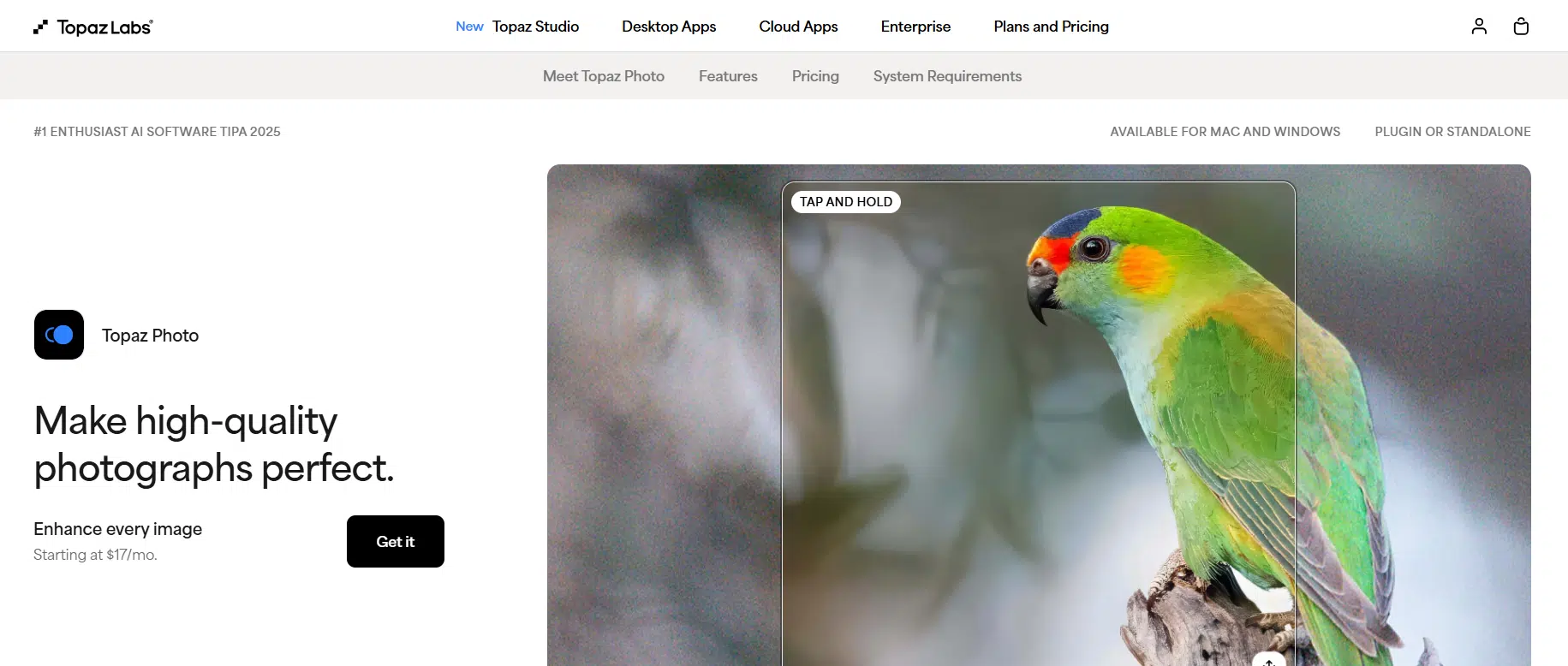 Topaz Photo is an AI-powered image enhancement software that helps users improve photos using advanced tools for sharpening, denoising, upscaling, and restoring details, making it easy to fix low-quality images. They allow users to enhance clarity, recover faces, adjust lighting, and balance colors automatically, helping turn imperfect shots into high-quality visuals. The platform focuses on delivering high-precision results using AI models trained on millions of images, ensuring realistic and detailed outputs.