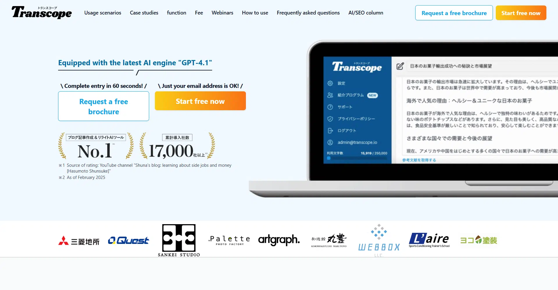 TransScope is a powerful AI writing and SEO platform built with the latest GPT-4.1 engine to help businesses create optimized, high-quality content in minutes. Trusted by over 17,000 companies, it combines advanced language generation with real SEO intelligence, making it ideal for teams that want to boost search rankings or streamline internal communication.