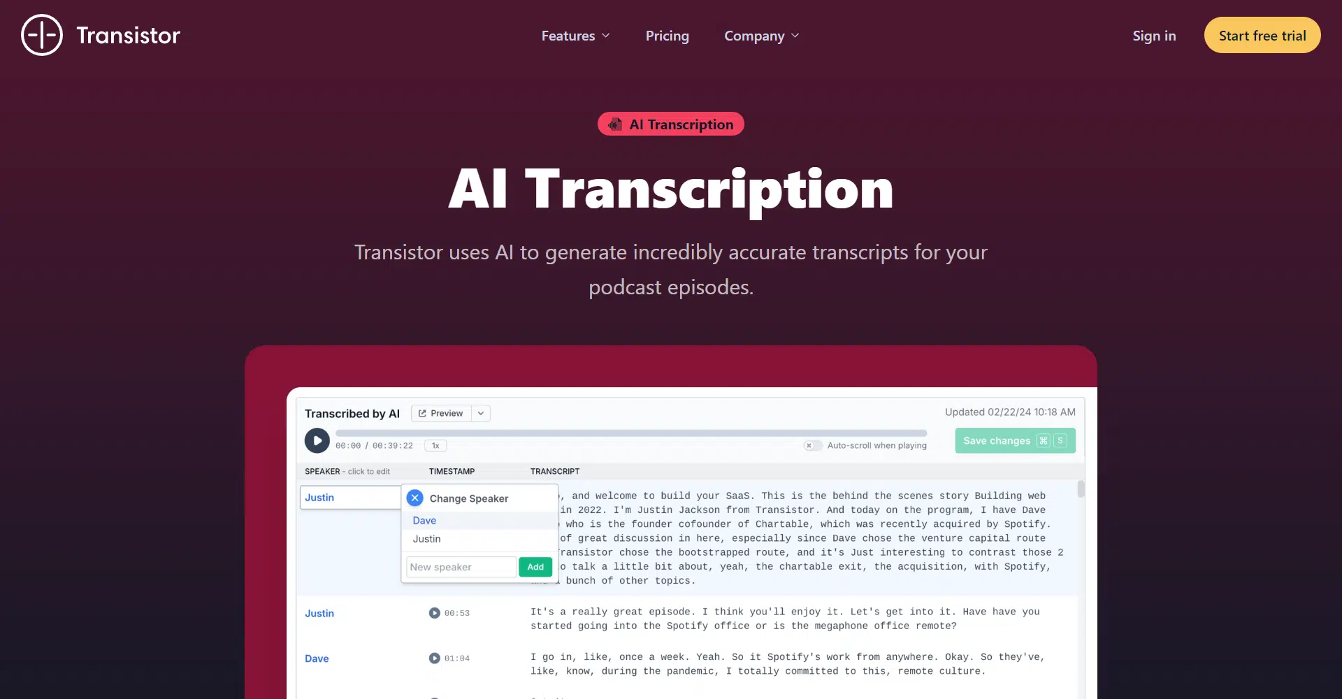 Welcome to Transistor, user all-in-one podcast publishing platform designed to simplify every step of their podcasting journey. With Transistor, creating and sharing their podcast has never been easier.Leaving the technicalities behind, Transistor allows users to record and upload their podcast with ease, freeing them to focus on creating captivating content.