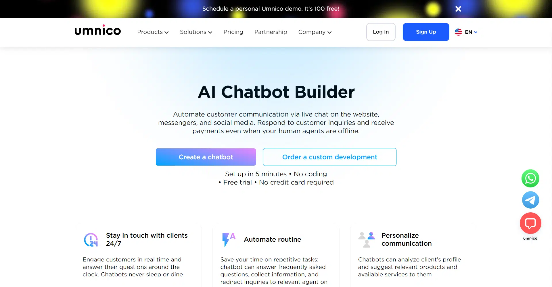 Stay in touch with your clients 24/7 with Umnico, a platform that revolutionizes customer engagement through real-time communication. With Umnico, you can engage customers around the clock, automate routine tasks, and personalize communication, all without needing in-depth programming knowledge.