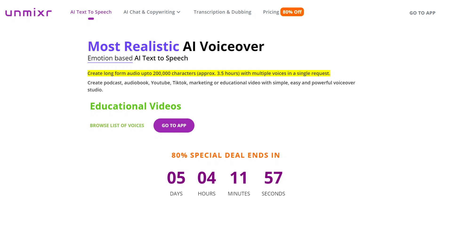 And the best part? You can opt for their free plan, which includes 2000 characters of voiceover and more, there’s no reason to hesitate. Join the ranks of satisfied creators and experience the future of voiceover creation with Unmixr AI Voiceover today!