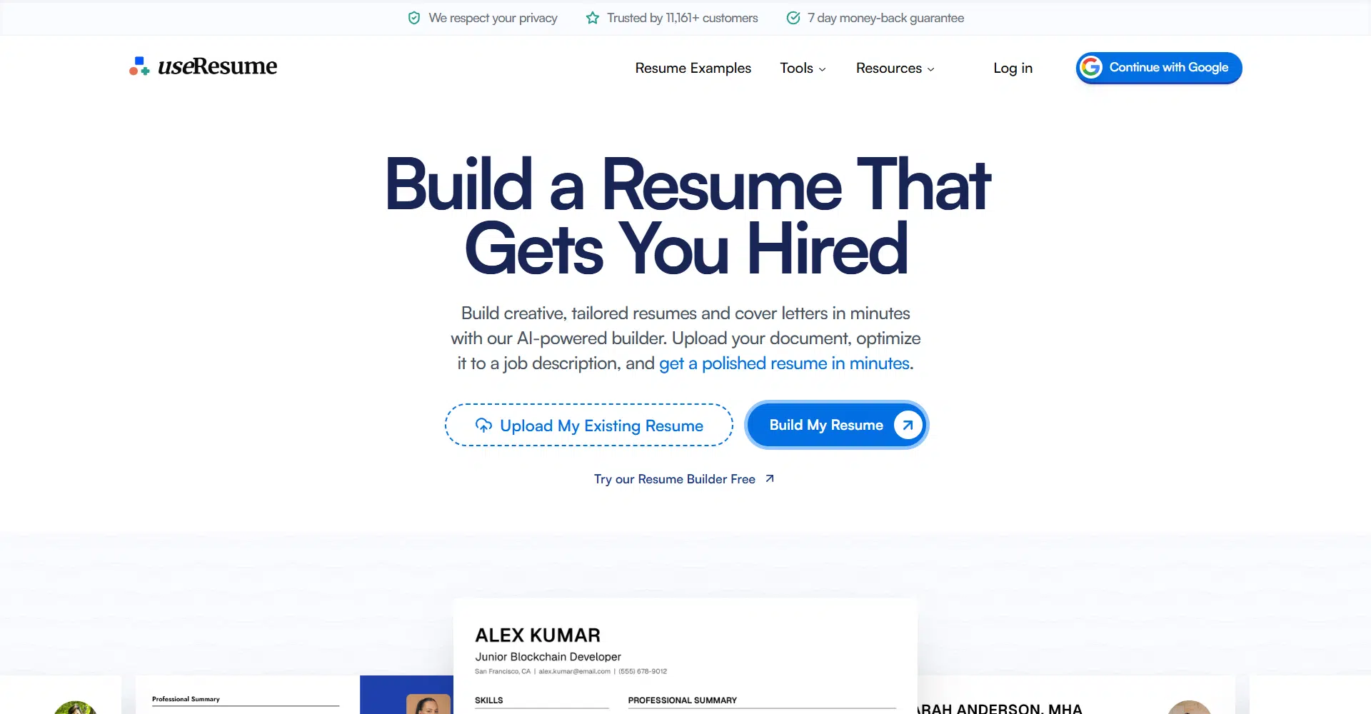 UseResume is a powerful AI-powered tool designed to help you create professional, tailored resumes and cover letters quickly and easily. Whether you’re starting fresh or uploading an existing resume, UseResume analyzes your information and job descriptions to craft documents that truly stand out. Its AI-Powered Resume Optimization highlights your skills, experience, and achievements in a way that catches the attention of hiring managers and Applicant Tracking Systems (ATS).