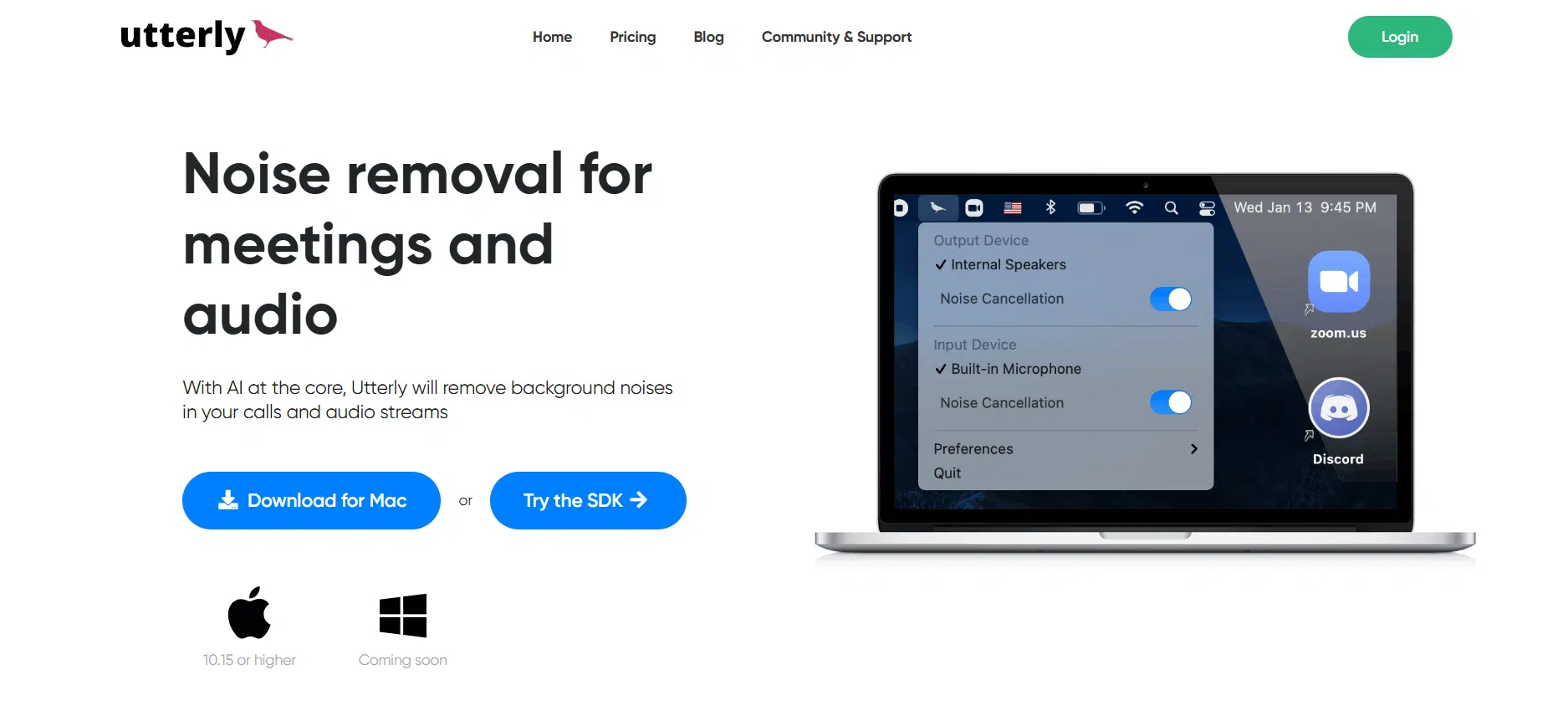 Utterly is an AI-powered noise cancellation app that removes background noise in real time during online calls and meetings, running locally on your device for privacy and clearer communication.