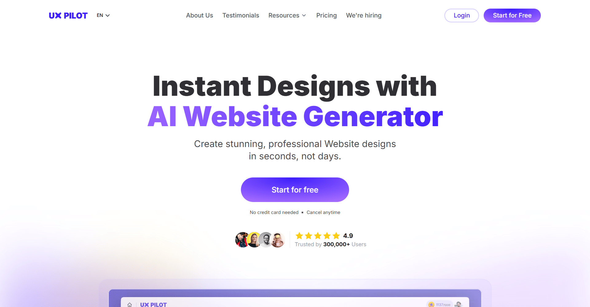 On a free plan you will get 90 credits to try uxpilot.
