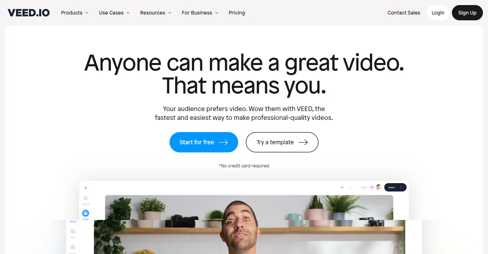 Ready to take a flight? VEED’s browser-based professional video editor allows you to record and edit in one place. The best part is that you can try it all for free! The trial includes essential editing features with 2GB storage, 30 minutes of subtitles monthly, and a 1GB upload limit. No credit card is required. Elevate your video game effortlessly with VEED, where simplicity meets video wizardry.