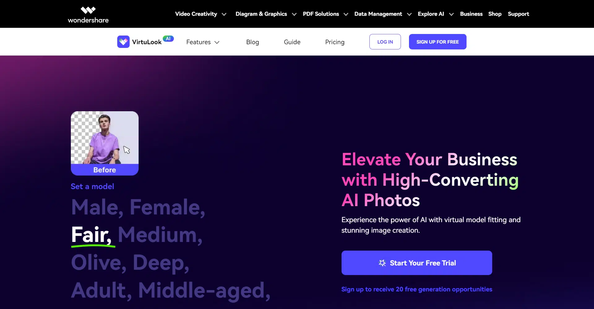 Ready to experience the power of VirtuLook? Sign up now to receive 20 free generation opportunities. Take your fashion business to new heights with VirtuLook!