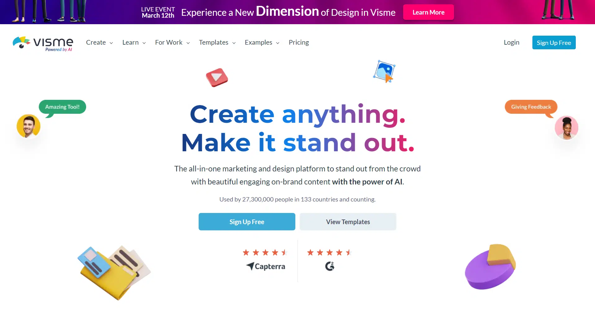 Step into a world where design and simplicity converge seamlessly—welcome to Visme, the all-in-one marketing and design platform captivating the hearts of 27,300,000 users across 133 countries and counting.