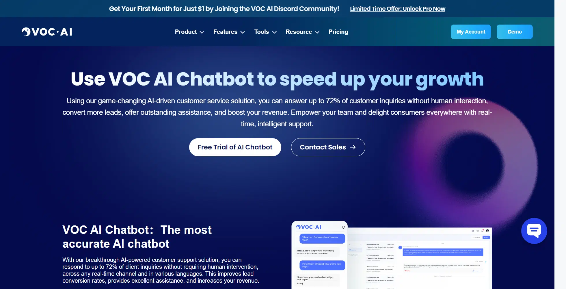 Boost your growth with VOC AI Chatbot, the game-changing customer service solution powered by AI. This means you can convert more leads, provide outstanding support, and increase your revenue. Their real-time, intelligent support delights customers and empowers your team to focus on high-value inquiries, making your operations more efficient.