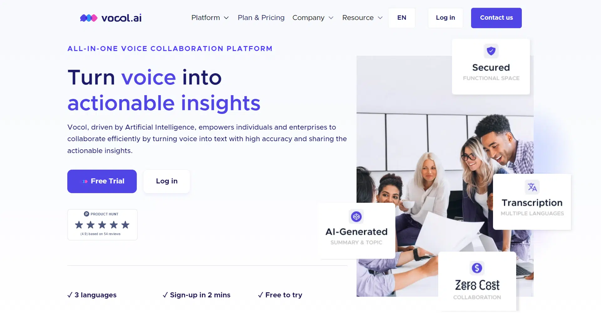 With Vocol, efficiency is key. Its advanced AI technology not only transcribes meetings in multiple languages, including Asian languages like Chinese and Japanese, but also highlights critical insights, making decision-making faster and more informed.