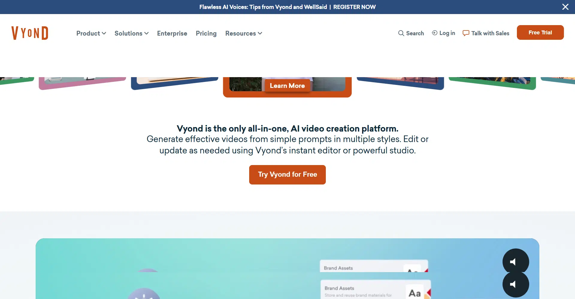 Vyond makes video creation instant, effortless, and accessible to everyone. As the only all-in-one AI video platform, it allows you to generate effective videos from simple prompts in multiple styles. Whether for marketing, sales, HR, or training, Vyond streamlines video production with intuitive tools, AI-powered features, and a vast library of templates.