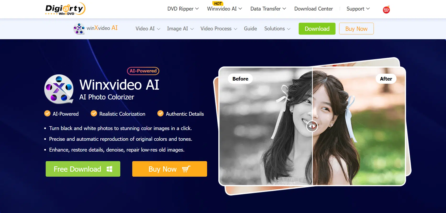 Main FeaturesAI Photo Colorization, Detail Enhancement & Restoration, Part of Winxvideo AI Suite