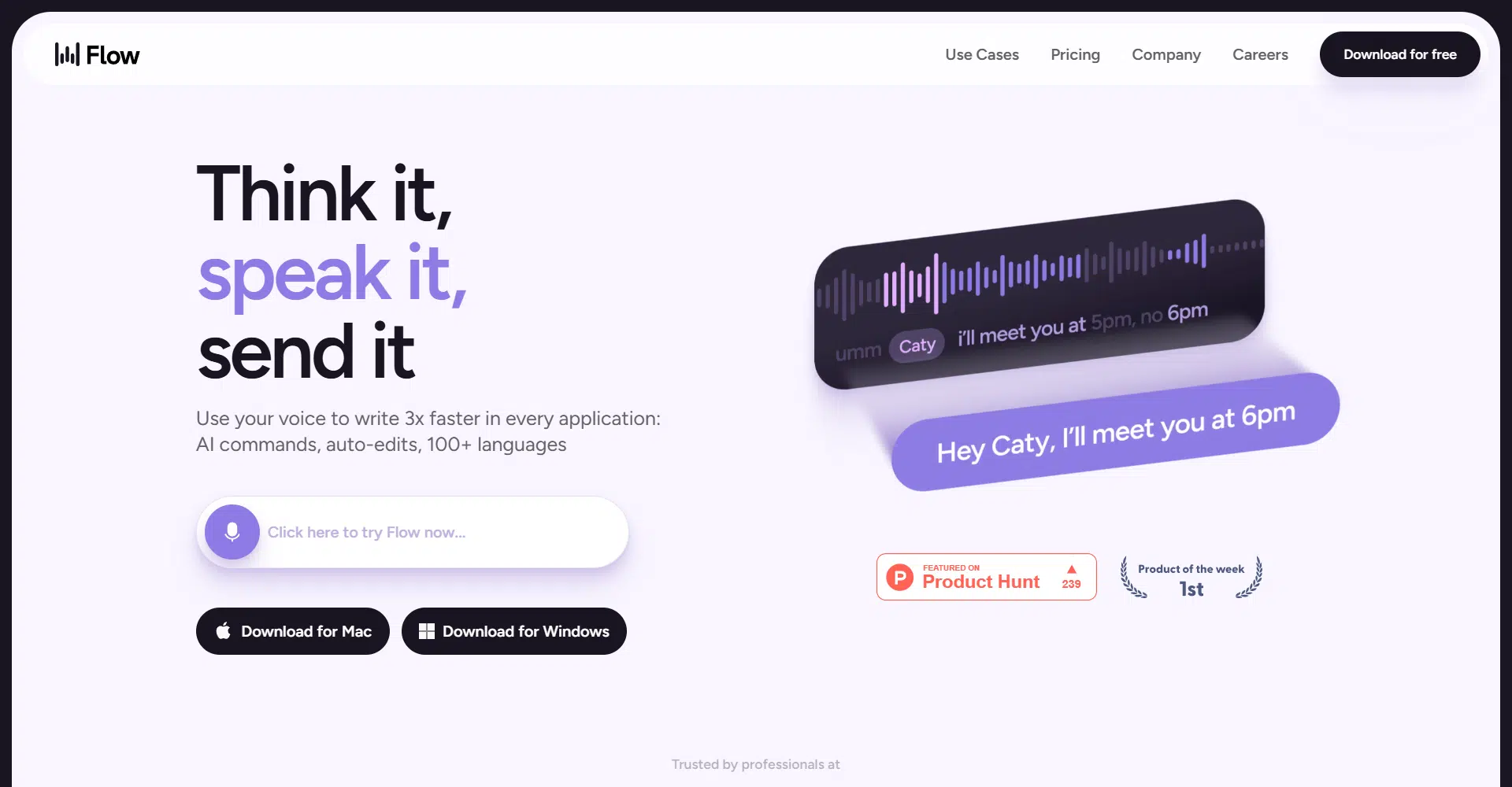 WisprFlow is a powerful AI-driven voice dictation tool that makes typing obsolete by transforming spoken words into text three times faster than traditional typing. Designed for efficiency, it enables seamless speech-to-text functionality across all applications on a computer, enhancing productivity and communication.