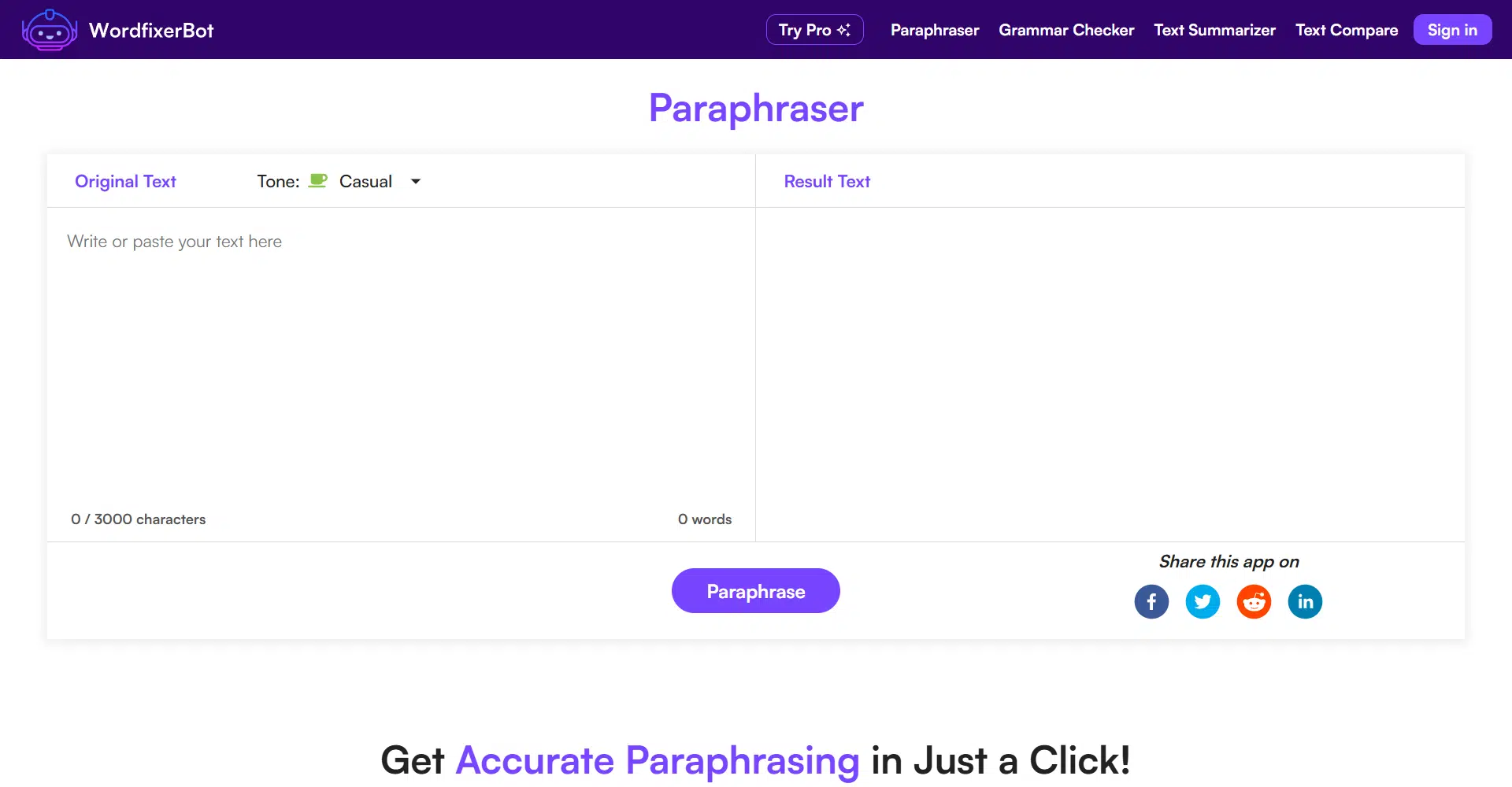 WordfixerBot’s Paraphrasing Tool makes rewriting text easier, faster, and smarter. With just one click, you can turn your original content into a fresh version while keeping the core meaning intact. Whether you’re working on academic writing, social media content, or business documents, this AI-powered tool helps you say it better—your way.