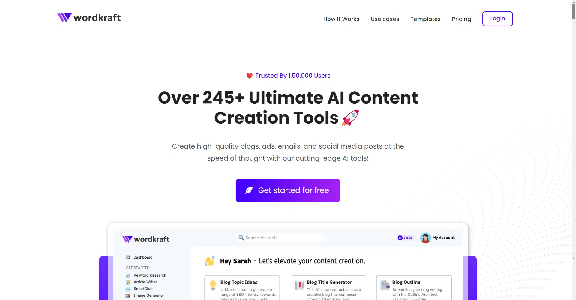 Discover the ultimate content creation platform with WordKraft AI, boasting over 245 cutting-edge tools designed to supercharge your content marketing efforts. Create high-quality blogs, ads, emails, and social media posts at the speed of thought!