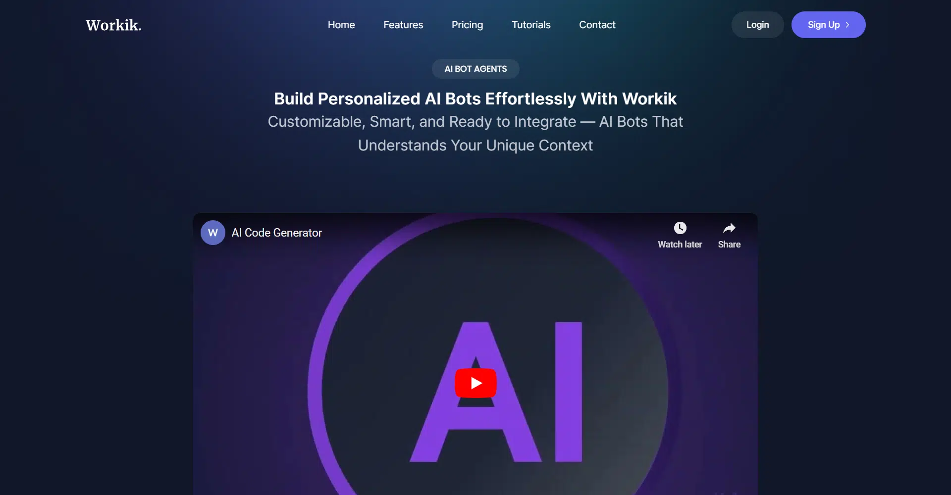 Welcome to Workik, your gateway to effortlessly creating and integrating AI bots tailored specifically to your team’s needs. Whether you’re aiming to streamline development processes or enhance project management, Workik provides a straightforward platform that empowers you to build and fine-tune AI bots with precision, all without the need for extensive coding skills!