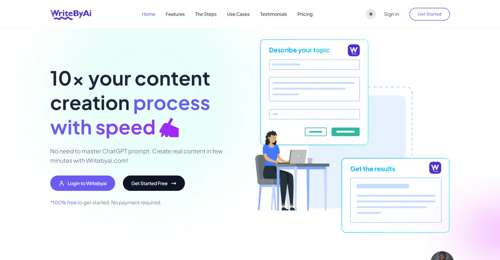 WriteByAI is your go-to AI content creation tool designed to help you scale your writing process 10 times faster without the need for mastering complex prompts. From blog posts to social media updates, email campaigns, website copy, and beyond, WriteByAI empowers businesses to produce high-quality content effortlessly. Say goodbye to writer’s block and hello to stress-free, real content creation in just minutes.