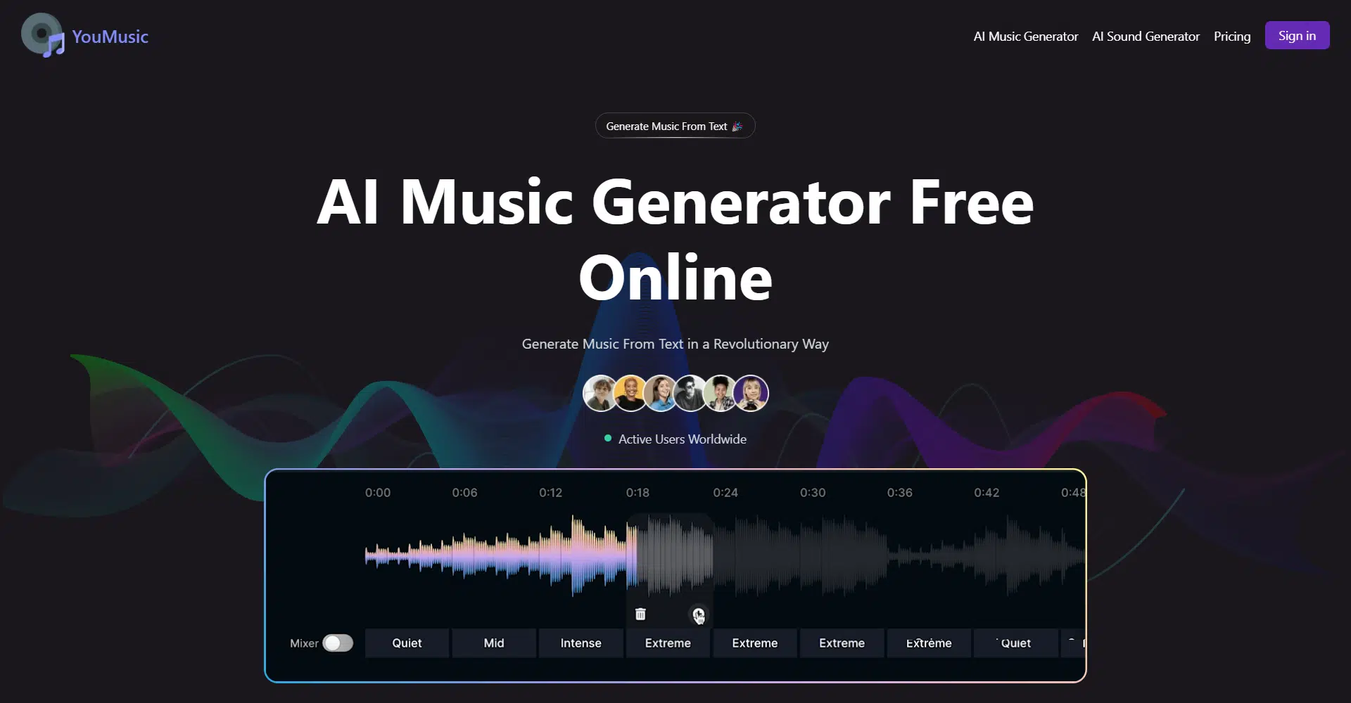 Getting started with YouMusic.AI is easy and intuitive. Simply sign up, craft a detailed prompt describing the genre, mood, or instruments you envision, and let the AI generate the perfect track for you. With advanced machine learning, YouMusic continuously improves its audio quality, offering music across a wide range of styles from pop and rock to classical.