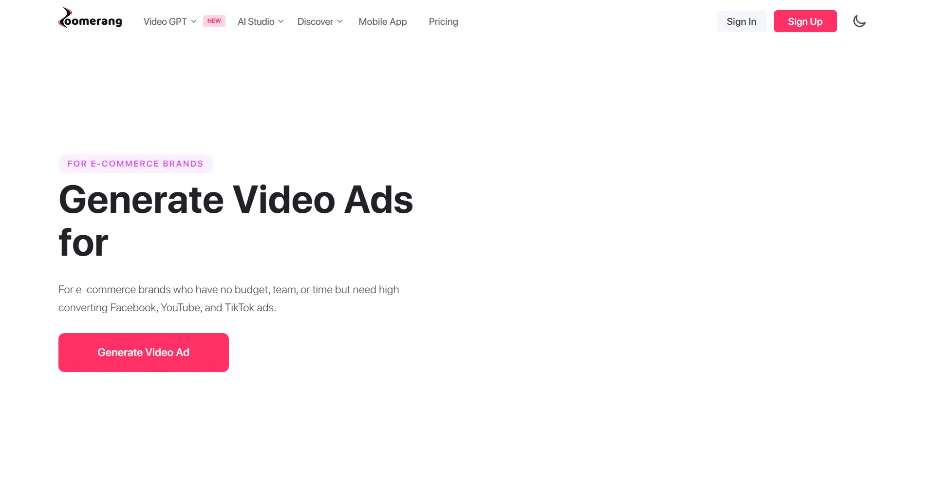 Zoomerang makes creating high-impact ads easy for e-commerce brands. With Zoomerang, you can quickly generate video ads for platforms like Facebook, YouTube, TikTok, and Instagram. Say goodbye to the headaches of working with freelancers. Zoomerang lets you produce the popular User-Generated Content style ads that customers love. It’s the perfect tool for making your ads stand out and boost sales effortlessly.